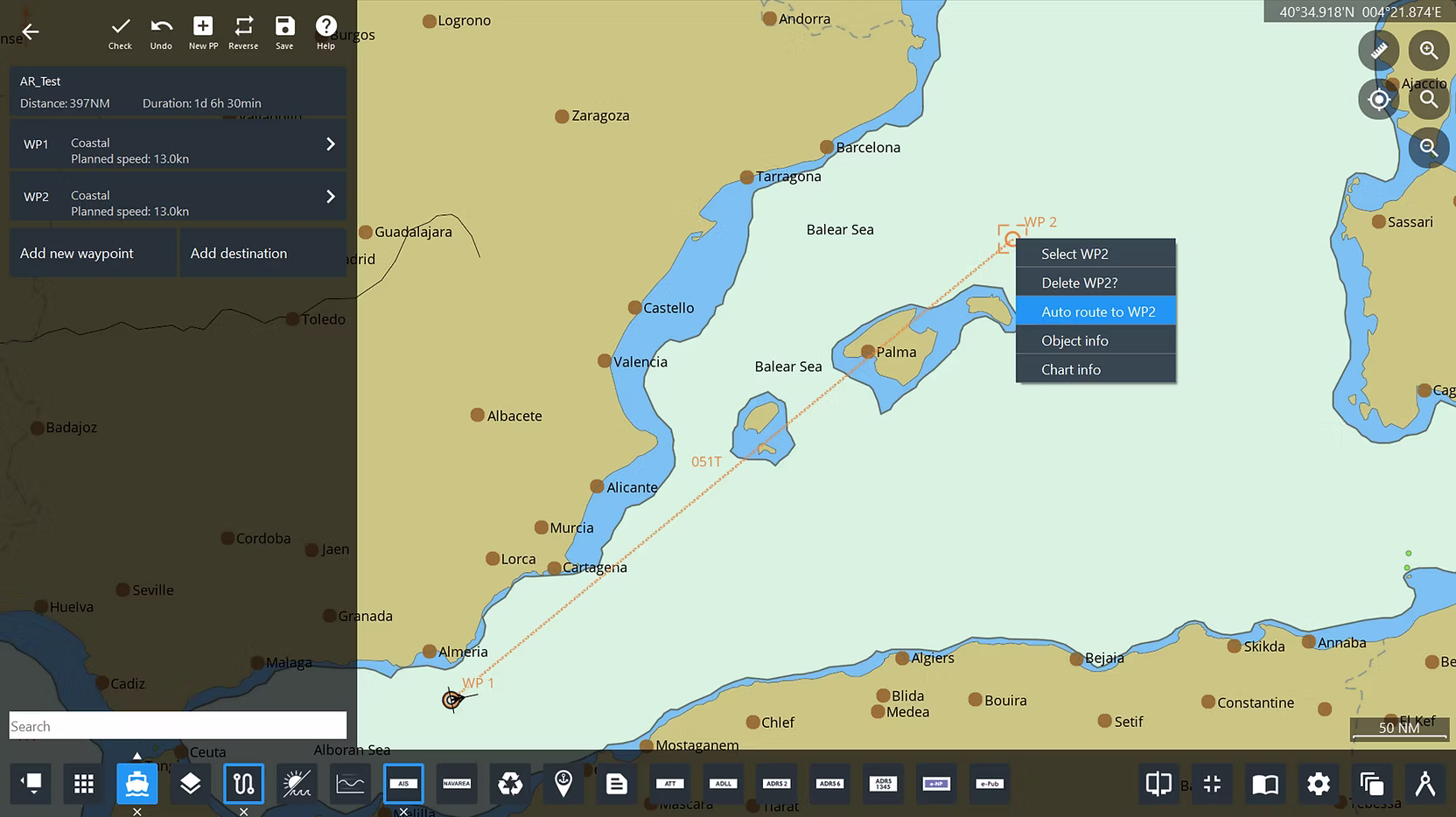 The Auto Routeing module is fully integrated with the onboard NavStation Route Planning module.